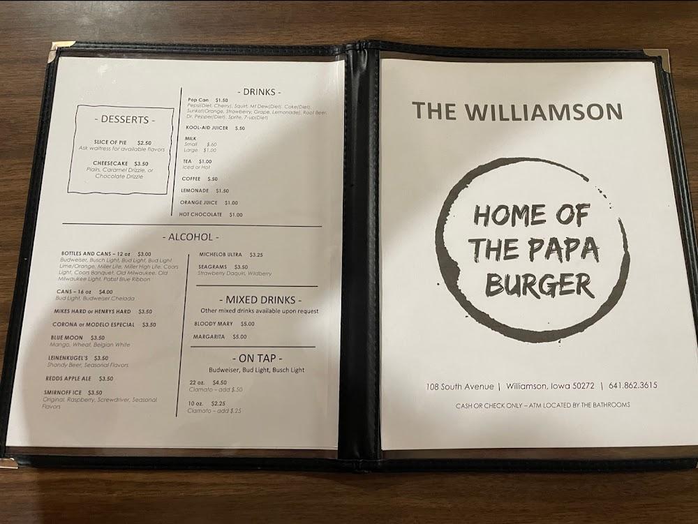 Welcome to Williamson Tavern, your cozy neighborhood destination in Chariton, IA, where flavor meets fun! Specializing in grilled delights and local specialties, we offer a diverse menu ideal for lunch, dinner, or a casual solo outing. Enjoy our excellent cocktails, extensive beer selection, and the excitement of arcade games in a relaxed atmosphere. With options for takeout, dining in, or delivery, we cater to your every craving. Our accessible features ensure everyone can unwind comfortably. Join us at 108 W South St for a delightful experience that’s perfect for groups or tourists—reservations now accepted! See you soon!